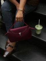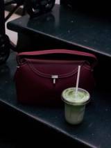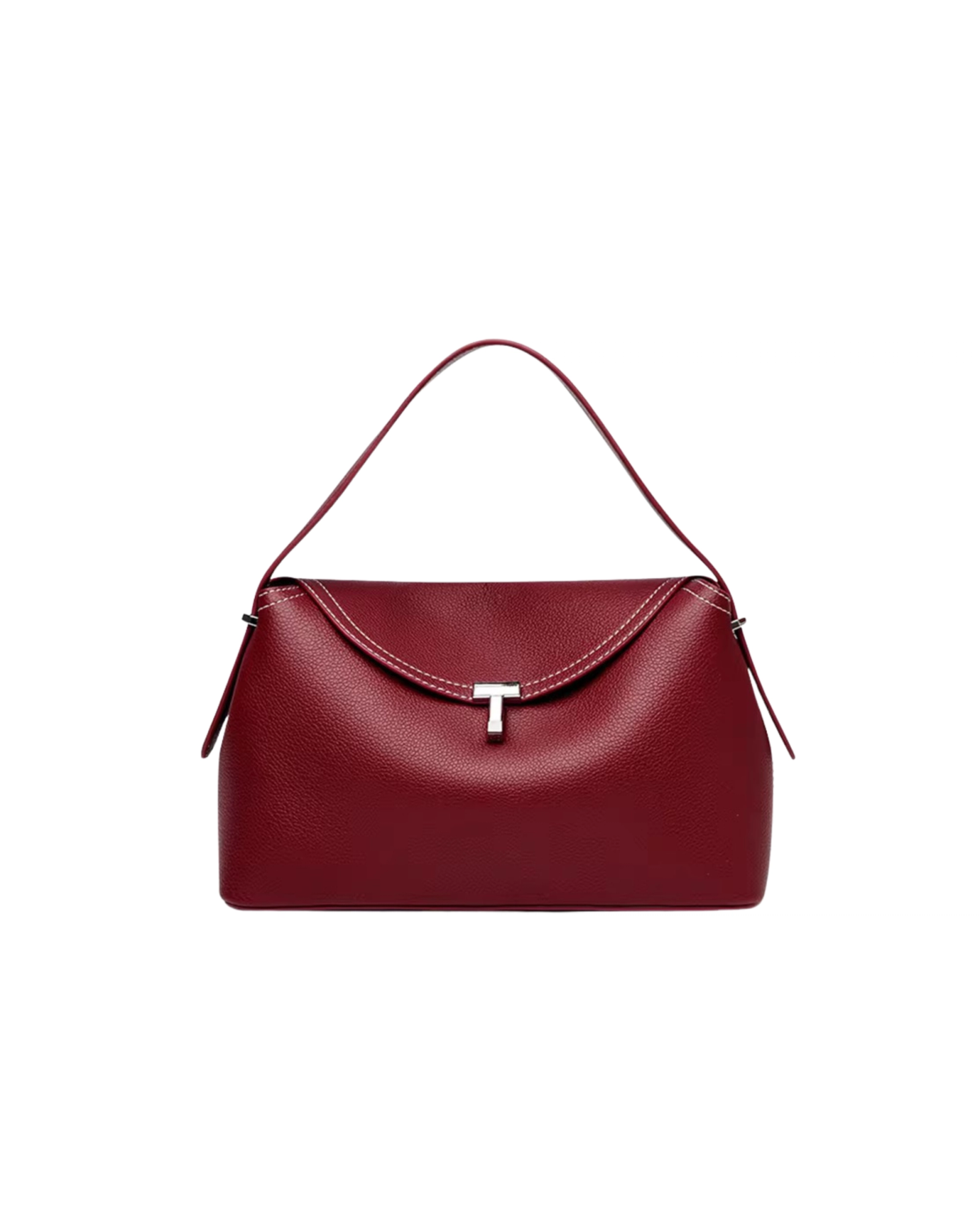 This sleek shoulder bag crafted from textured leather, featuring a curved flap with a polished metal clasp. Elegant, compact, and perfect for both everyday wear and special occasions.