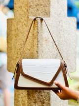 Featuring a striking combination of smooth white faux-crocodile texture, Crafted with premium PU leather material. Offers durability without compromising style. The comfortable shoulder strap makes it perfect for day-to-night wear.